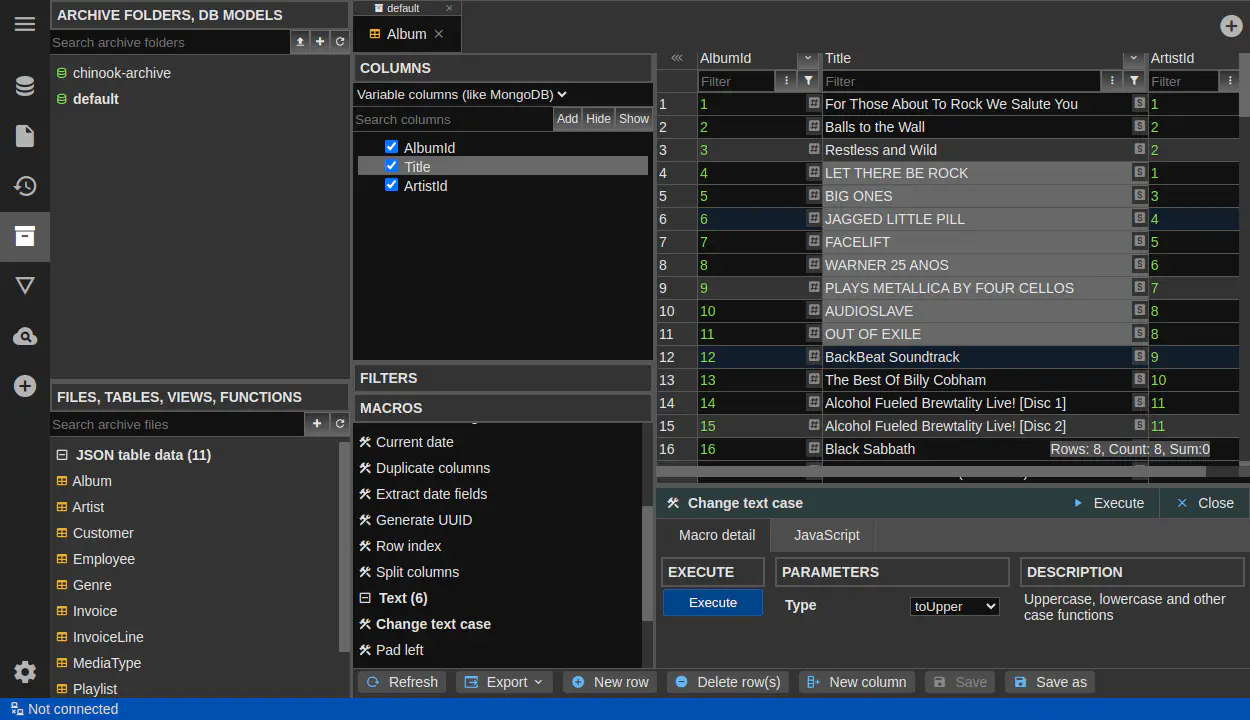 View and edit archive files - you could work with data files in the similar way as with tables - view, filter and sort data, or use inline editin