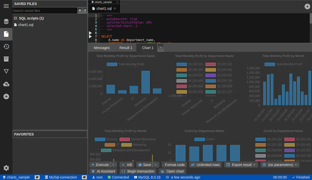 チャートの自動検出 - DbGate がデータを解析し、データに適したチャートを自動選択します