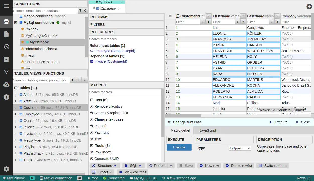 テーブルデータエディターでのマクロ