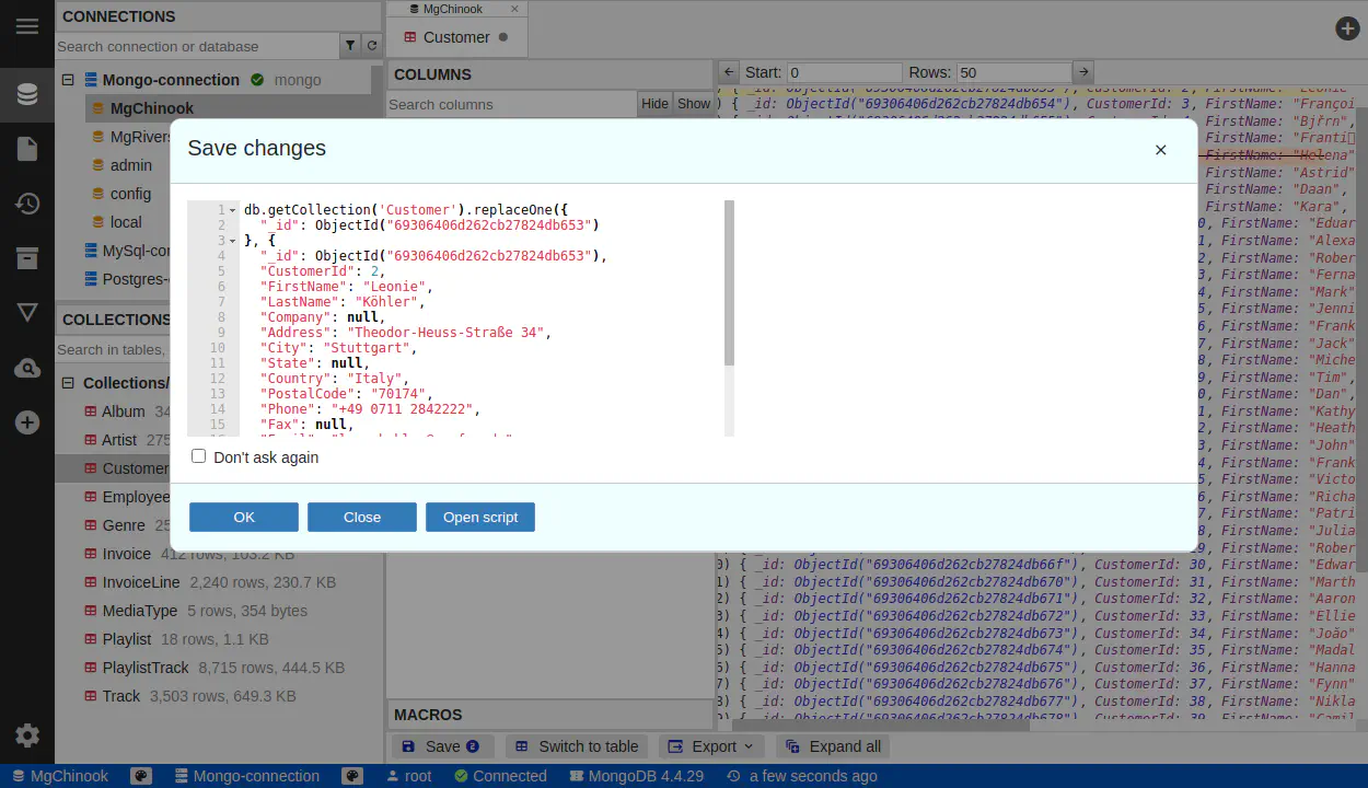 保存データプレビュー付き MongoDB データエディター