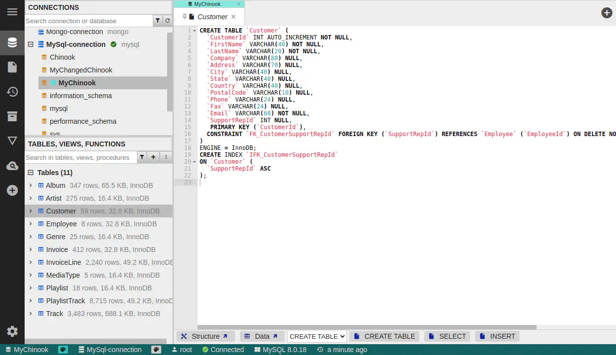 テーブル構造の表示