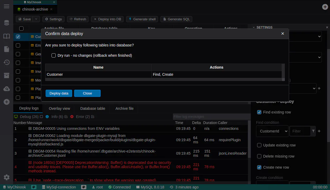 드라이 런(Dry run) - 완료 후 롤백하여, 데이터베이스에 영향을 주지 않고 데이터 동기화 작업을 테스트할 수 있습니다.
