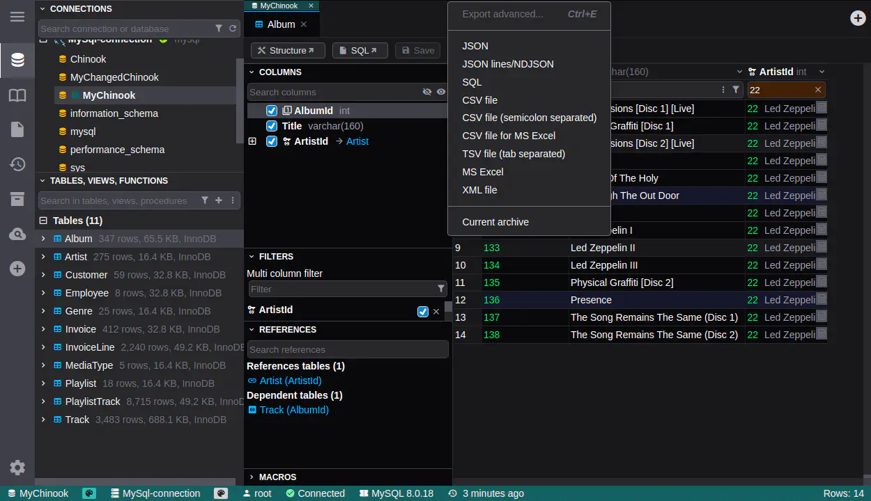 데이터 아카이브 - 중간 데이터, 데이터 백업 또는 데이터 템플릿을 위한 DbGate의 특수 내부 저장소입니다(디스크에 저장되며 NDJSON 형식을 사용).
