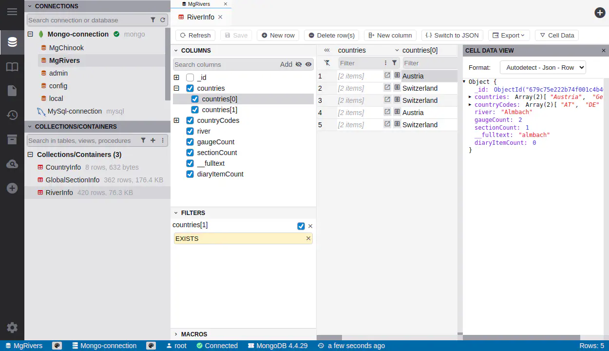 저장 데이터 미리 보기가 있는 MongoDB 데이터 편집기