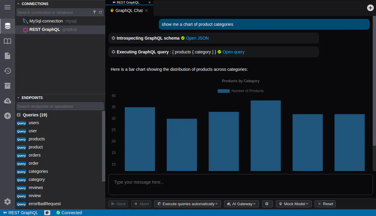 Version 7.1.2 introduces a revolutionary new feature called GraphQL Chat. This AI-powered chat interface allows you to interact with GraphQL endpoints naturally through conversation. Ask questions, explore your GraphQL schema, and execute queries using natural language - the AI handles the translation to GraphQL automatically.