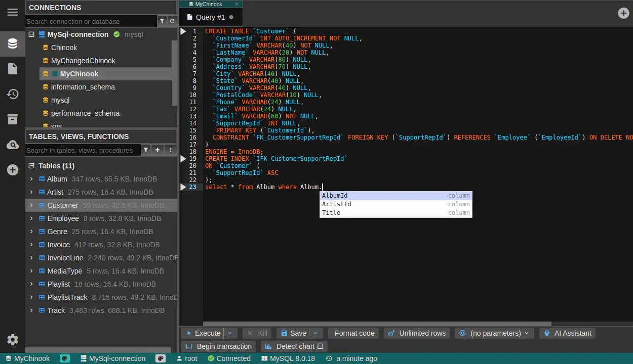 Ukladajte svoje pripojenia, SQL skripty a ďalšie objekty v cloudovom úložisku. Použite zdieľané priečinky na zdieľanie s inými ľuďmi. Pristupujte a prispievajte do verejnej databázy znalostí užitočných SQL skriptov a grafov.