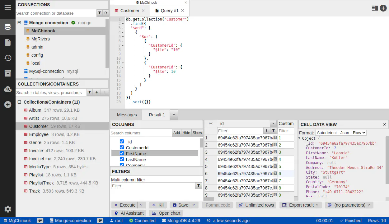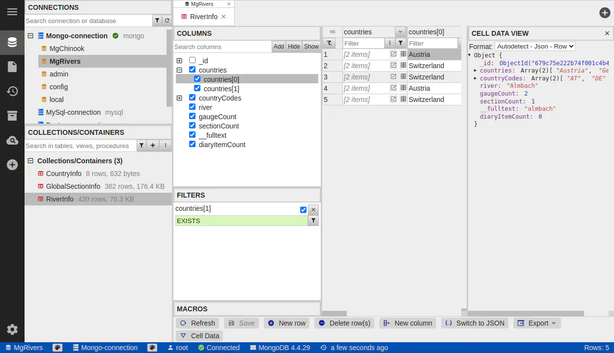 Prehliadanie a rozbaľovanie kolekcie MongoDB